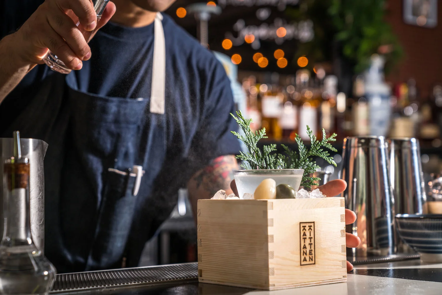grey goose, spring 44 mountain gin, fino sherry, junmai daiginjo, hinoki tree essence